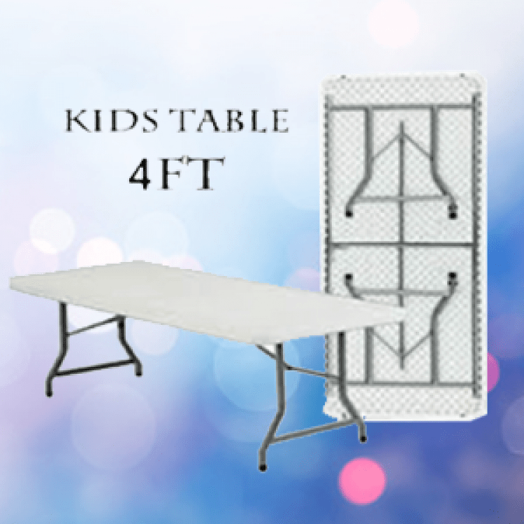 The kids folding table are white and fold easily, and they look great set up at kids parties! Don't forget the chairs!
