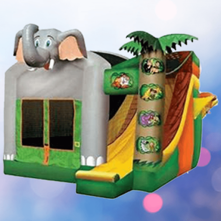 Bruno's Bounce House brings you this jungle-themed bounce house and slide combo which is sure to be a hit with the kids! It has a large bounce area with a basketball hoop and a large slide.
