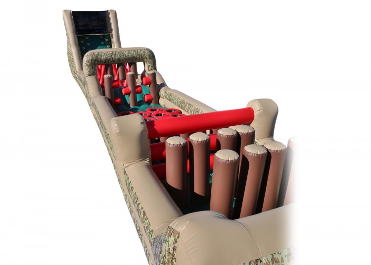 Spanning an impressive 85 feet, this 3-piece obstacle course is a true test of speed, agility, and determination. Featuring a series of challenging obstacles, including pop-ups, crawl-throughs, and unexpected surprises, it provides a boot camp experience like no other. The camouflage-like colors enhance the immersive atmosphere, making participants feel as though they're tackling a real-life challenge.