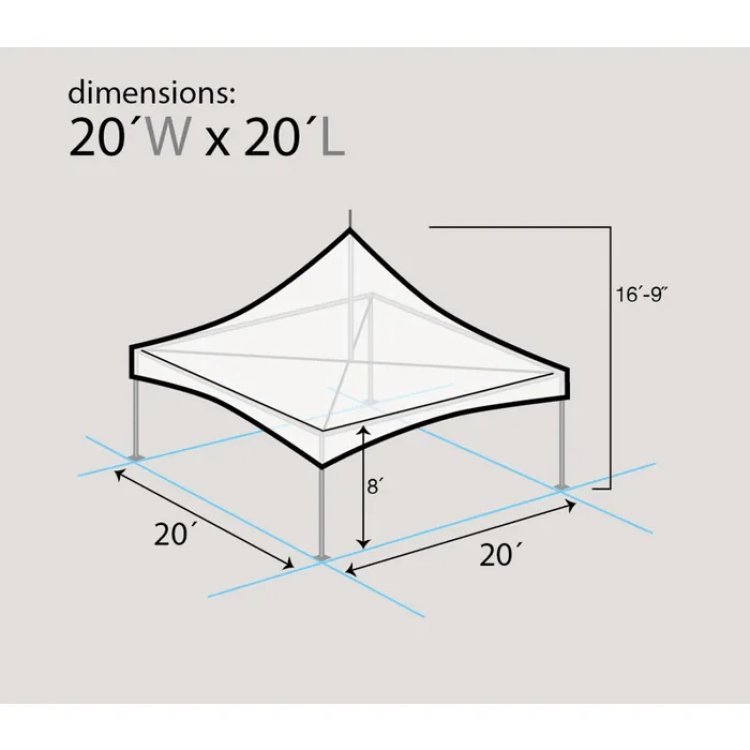 The 20x20 size is perfect for medium-sized gatherings, and the elegant design will add a touch of sophistication to your event. Whether you need shade from the sun or protection from rain, this tent is a reliable and stylish solution.